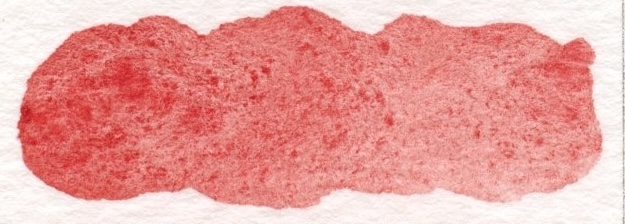 ここ2年使ってみて、すっかり気に入ってしまったので続投です。朱色ですが、透明度も高く、かなり鮮やかで、軽やかな色合いです。水だけひいて、滲ませるだけでとてもきれいです。色もややオレンジがかっているので、人物の肌にも相性ぴったりでした。薄く溶いて重ね塗りすると、パッと華やかになるのもお気に入り。