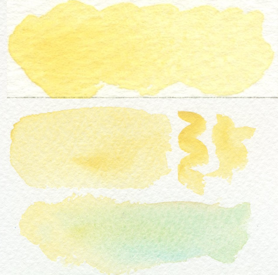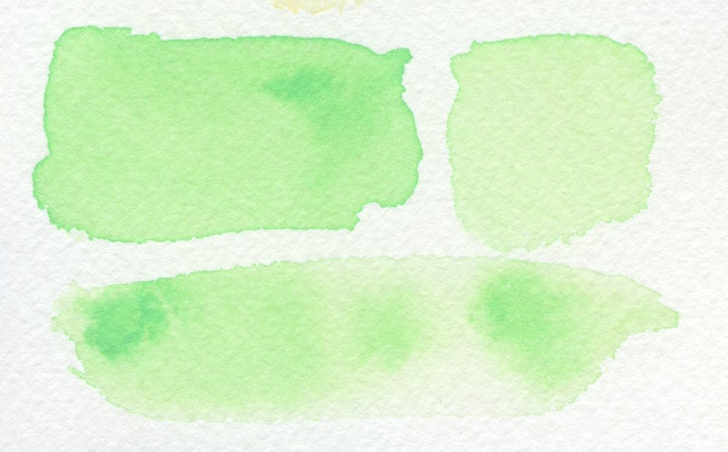 こちらははじめてパレットに入れる色で、全く使ったことのない色です。もともと黄緑はホルベインのサップグリーンやシュミンケホラダムのオリーブグリーンイエローのような渋めの黄緑が好みで、コンポーズグリーンのような鮮やかで人工的な黄緑は好みからは外れます。