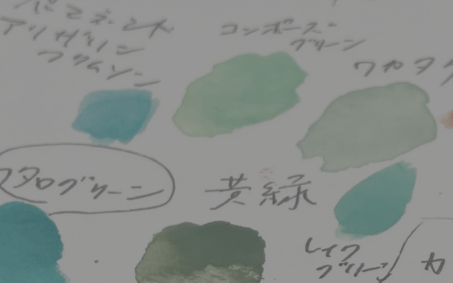 今年は白の混ざった緑色が入れてみたいと思っていて、最後までニッカーのワカタケにするか、ホルベインのコンポーズグリーンにするか迷っていました。ワカタケが使いやすいのは知っているけどコンポーズグリーンは新しい何かが生まれるような気もして。こちらをチョイス。