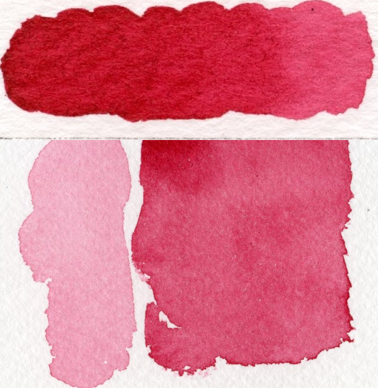 去年パレットに入れてみてよかったなと思った色の一つです。PR122キナクリドンマゼンタに白が混ざった色です。私はこの系統の色をピンクとして使うことが多いので、とても重宝しました。鮮やかなピンクでオペラとも似ていますが、耐光性が高いので安心して使うことができます。