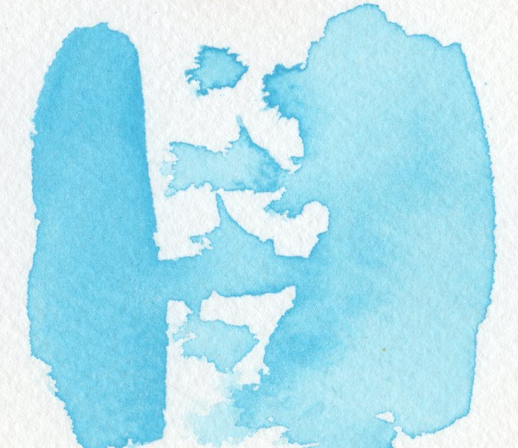 こちらも初めて使う色。塗ってみるとコバルトターコイズとも色が似ていますが、顔料の中身は全然違います。ホリゾンブルーは白とフタロブルー、フタログリーンの混合になっています。滑らかな塗り心地。不透明感もあるので、上から差し色としてにじませてもきれいかなと。何かと青系のパステルカラーは使いやすそうなので、今年新しいチャレンジとして入れてみました。