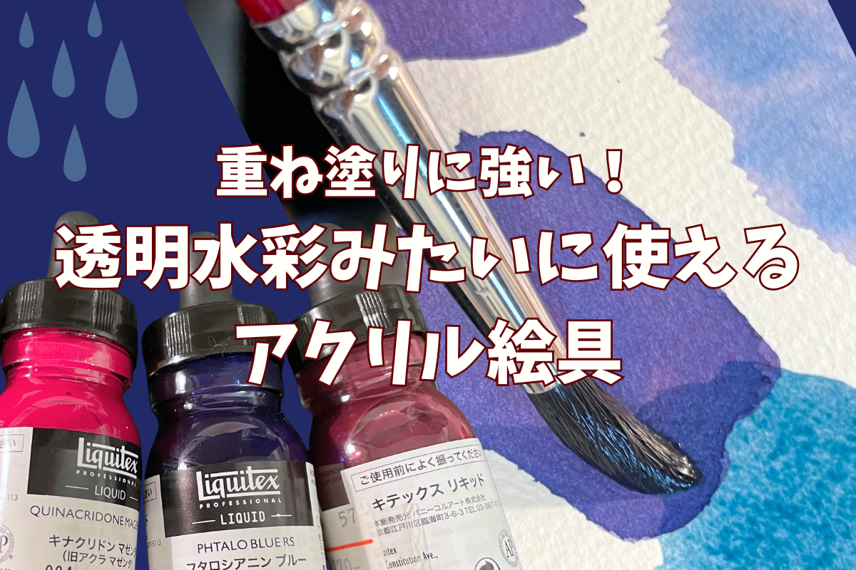 アクリルというと厚塗りをイメージしてしまうかもしれませんが、実は透明水彩風に使えるアクリル絵具もあります。