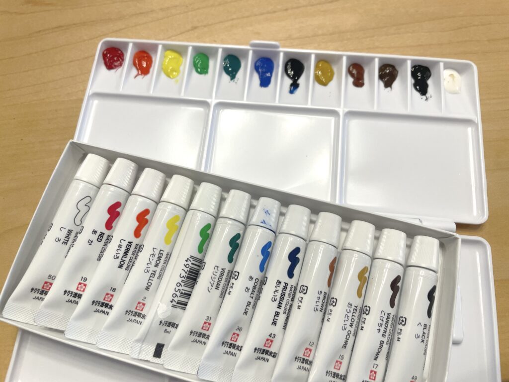 たくさん絵具をずらっと並べて使いたいときや、そもそも固形水彩の方が好き!という時には固形水彩のパレットを使うことになります。