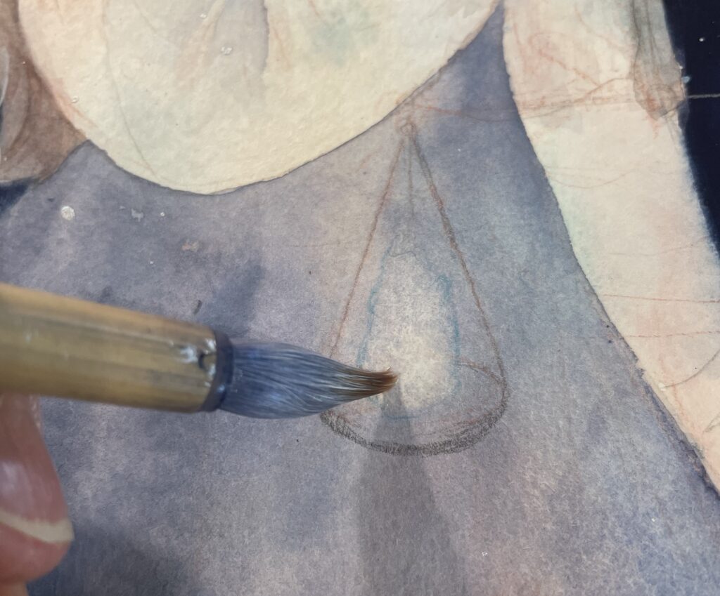 ただ、透明水彩らしい、透明感を感じる濃度で塗ったところはかなりいい感じです!きれいににじみも出ているし、重ね塗りも柔らかい筆ならできています。