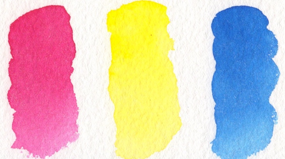 この三原色の赤・黄色・青は普通に私たちが考える、いわゆる赤・黄・青とはちょっとちがいます。