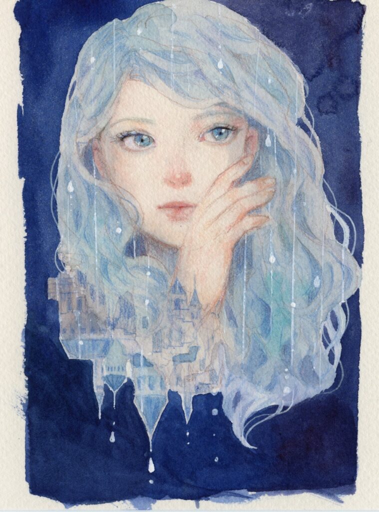 2番目に出したのは大阪のぎゃらりぃあとでした。青いものと祝福がテーマでした。そのころ青の作品をたくさん描いていたので、テーマに合う既作と新作、合計7点で参加しました。