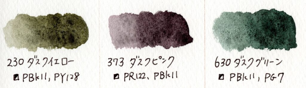 ホルベイン透明水彩[ナイトフォールカラーズ]暗色系の分離色!色見本、特徴について