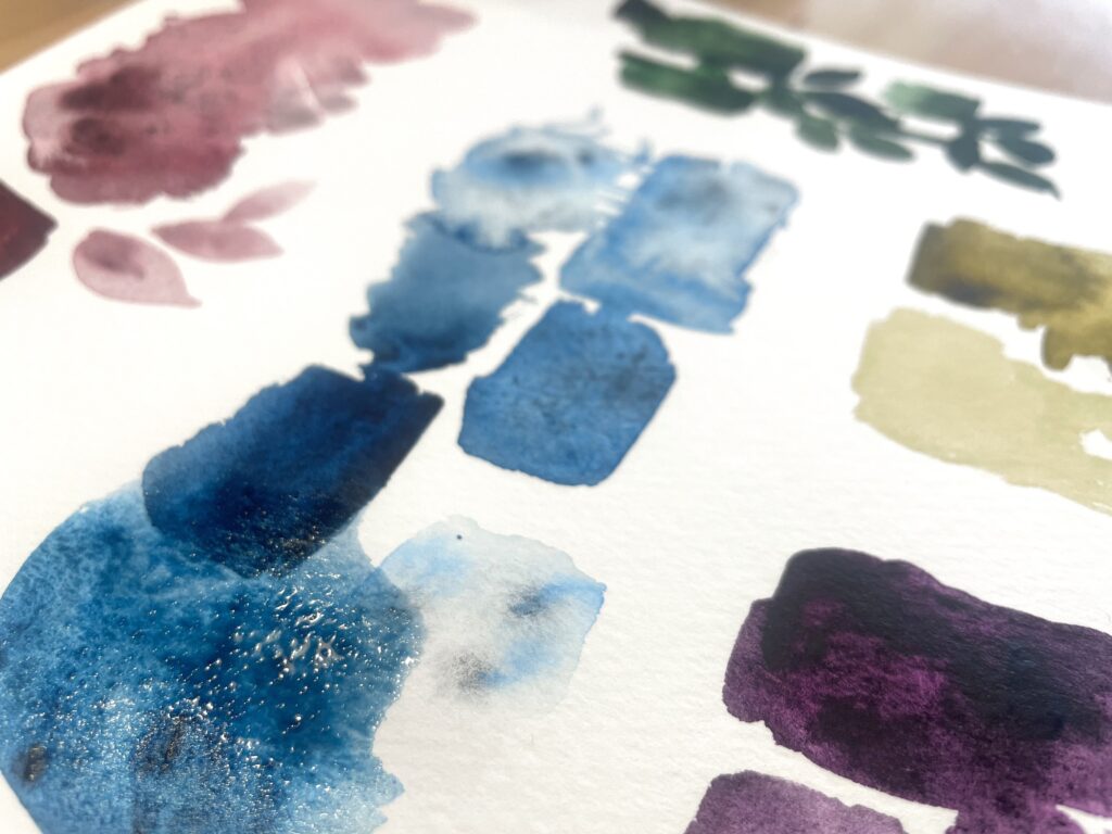 あと、先ほどもお伝えしましたが、紙によってかなり分離の出方が違うので、同じ色でもかなり印象が変わります。綺麗に見えない場合は、水彩紙を変えてみるといいかもしれません。試した中では、アクリルデネブが綺麗に出ました。