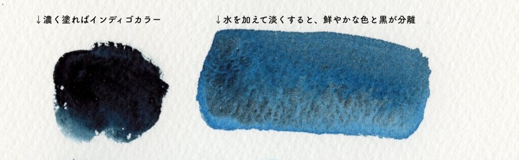 ちなみにインディゴという色も黒と青の顔料の組み合わせなのですが、分離しないので、色を淡くしても色が渋いままです!
