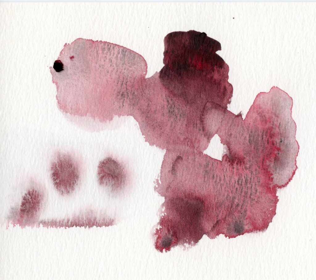 濃い部分は焦茶色??のような色。伸ばしていくと鮮やかな赤が出てきます。色だけ見るとちょっと毒毒しい感じにも見えるけど、薄く塗り伸ばすとベースカラーにもなる色。濃く塗ったときと、淡くしたときのギャップが素敵な色。人物画で肌色を少しくすんだ感じにしたい時とかに使えそうだな〜と思ったりしました。