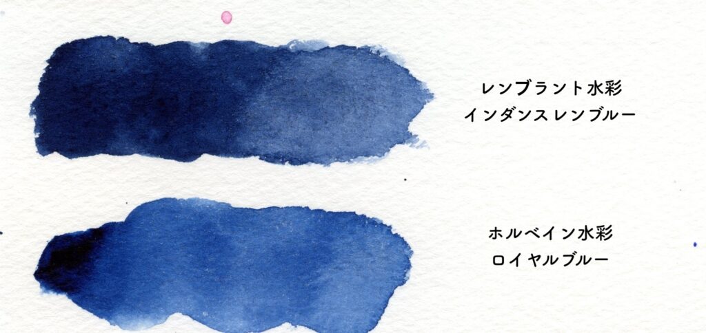 ホルベインのロイヤルブルーとレンブラント水彩のインダンスレンブルーの比較↓