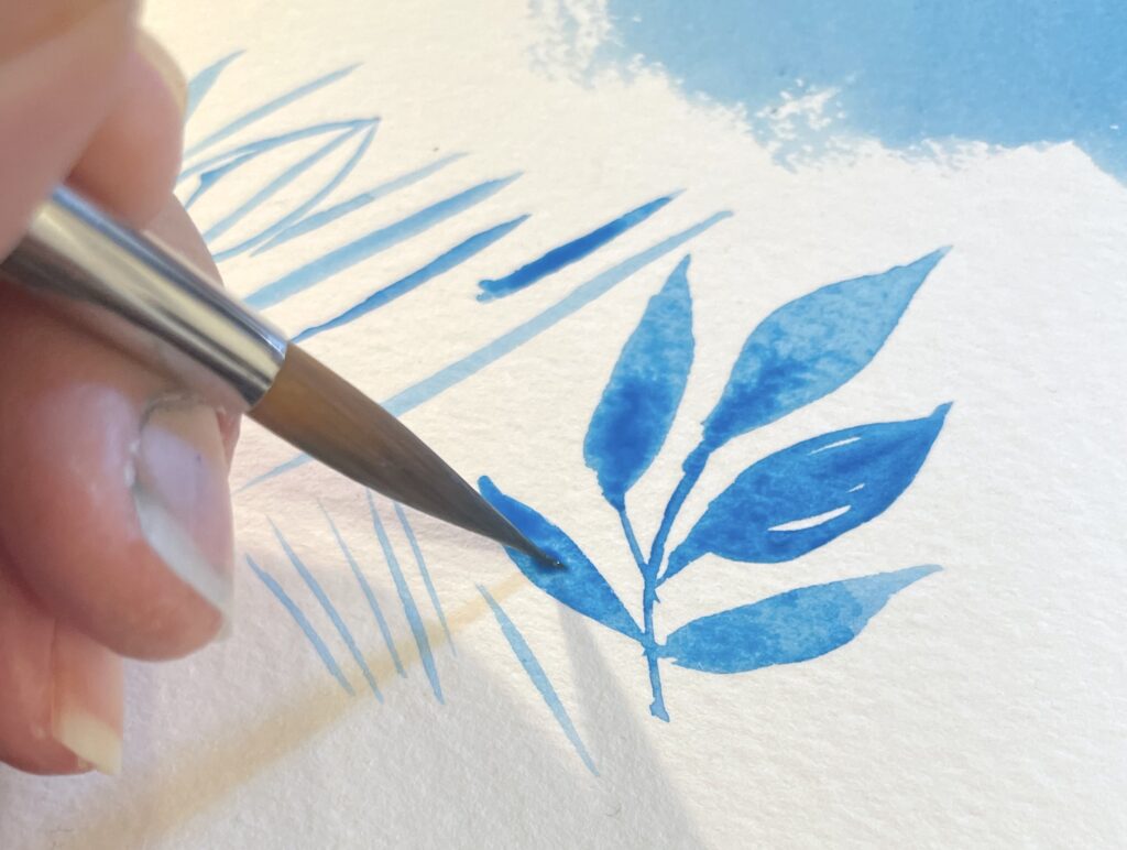ロングラウンドは、少し穂先が長い、細めの筆です。同じ号数の筆と比べてもスリムで毛の量も少なめです。先も尖っているので、全体的にスリムです。私が持っているのは6号と8号ですが、号数が小さくなくても、細い部分がしっかり描けるボリューム感です。