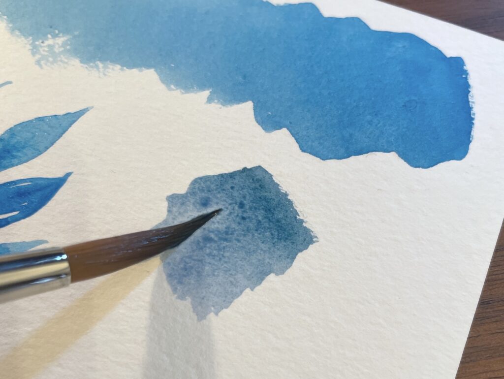 さすがにほっそりしているだけあって、あまり水は含みません。というか、この筆、塗り広げる、という作業に適していないようで、筆の腹?を使って塗っていくことはしにくかったです。ただ、あまり保水しない、ということがラフィーネの場合はよかったりします。