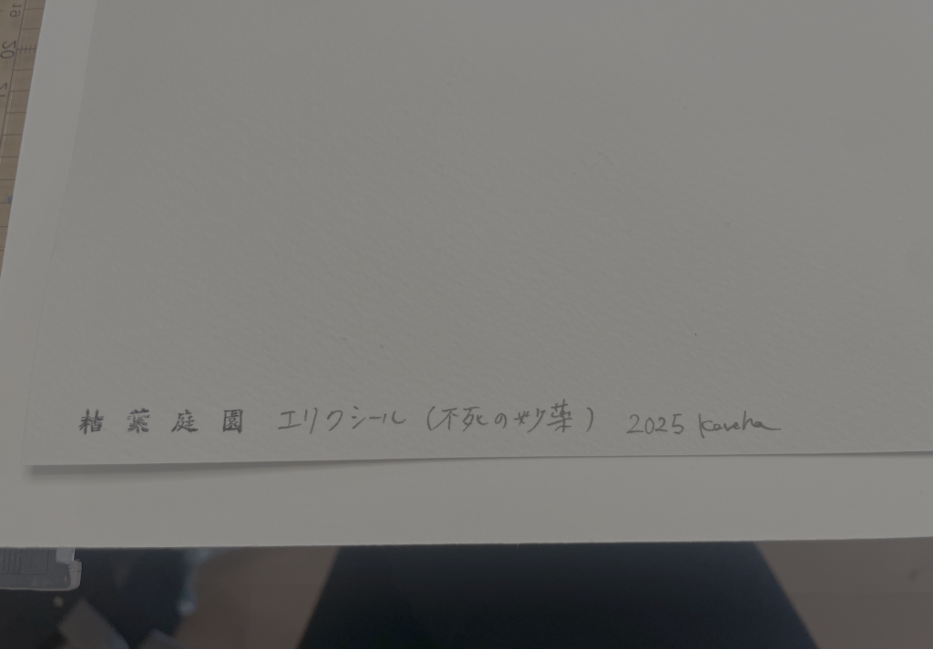 そしてどんなサインを入れるか考えておきましょう。私の場合は表面にKarehaのサイン、裏面に、作家名/タイトル/制作年/サインを入れています。