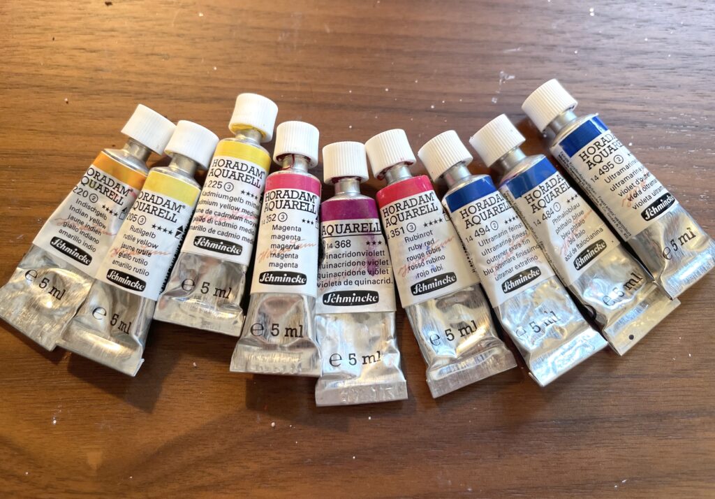 私も以前はシュミンケホラダムの絵具を主力で使っていた時期があったのですが、かなり値上がりしてしまったことで、手が出しにくくなりました。そのため、基本色はホルベインやウィンザー&ニュートンで揃え、少し変わった色だけシュミンケホラダムで揃えています。