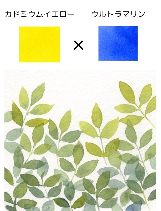 葉だけではなく、川や湖などの水の表現にも使えそうな組み合わせです。