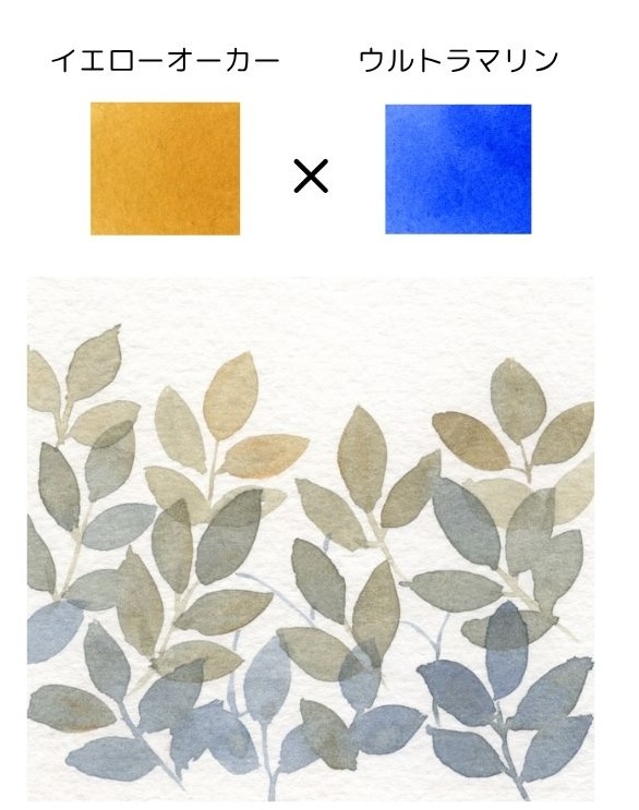 イエローオーカー×フタログリーンの組み合わせは、少し渋さは出ますが、使い勝手がよい組み合わせです。